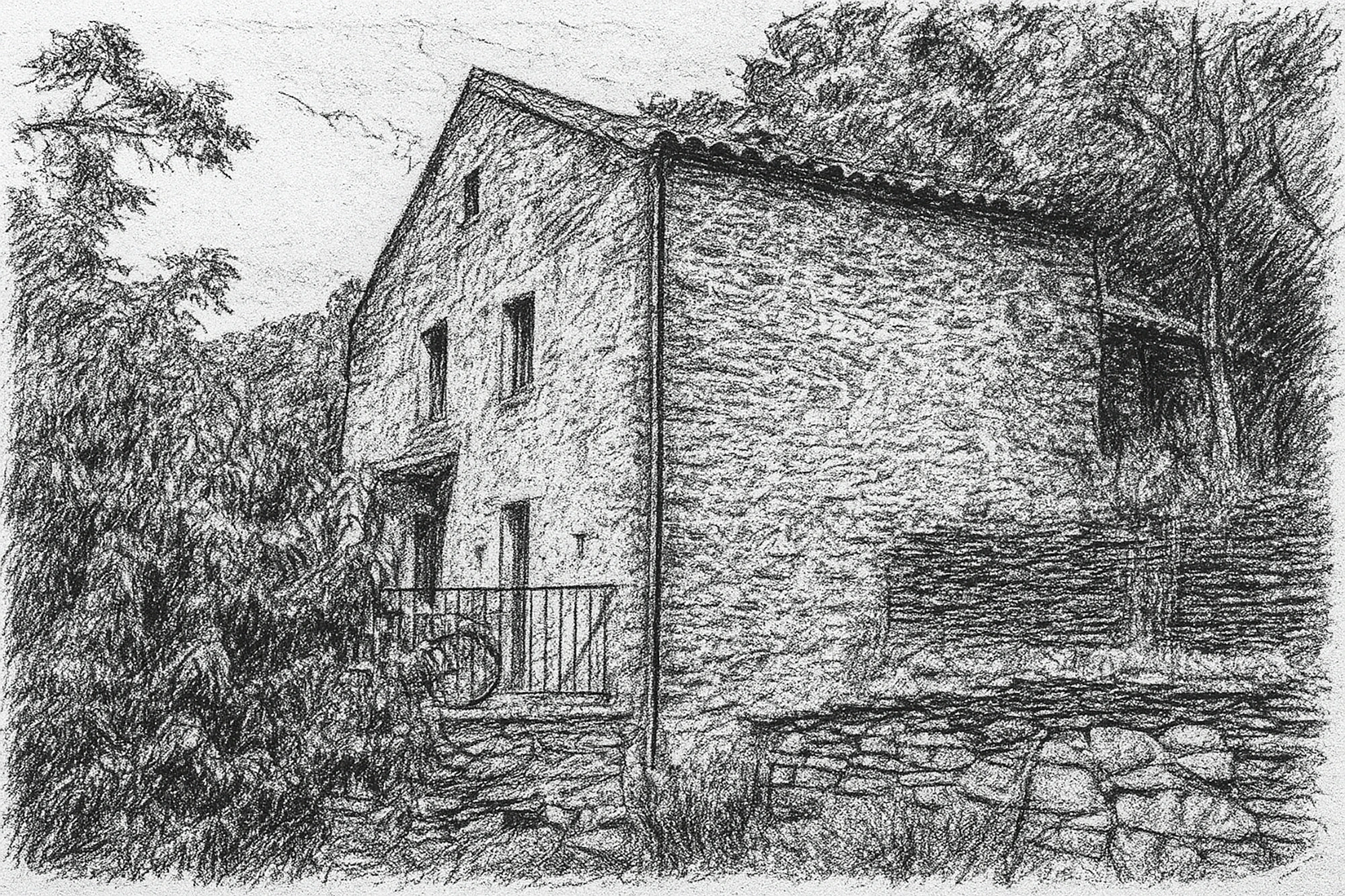 The highest house in Bardou, Daisse is one of the largest houses in the village. It was one of the few buildings still intact when Klaus and Jean arrived. They lived here during the first two years, patching the roof and covering broken windows with plywood. The house once belonged to Marinette Daïsse, who was born there in the early 20th century. She went to school in Bardou, left when she married, and returned briefly during the Second World War.