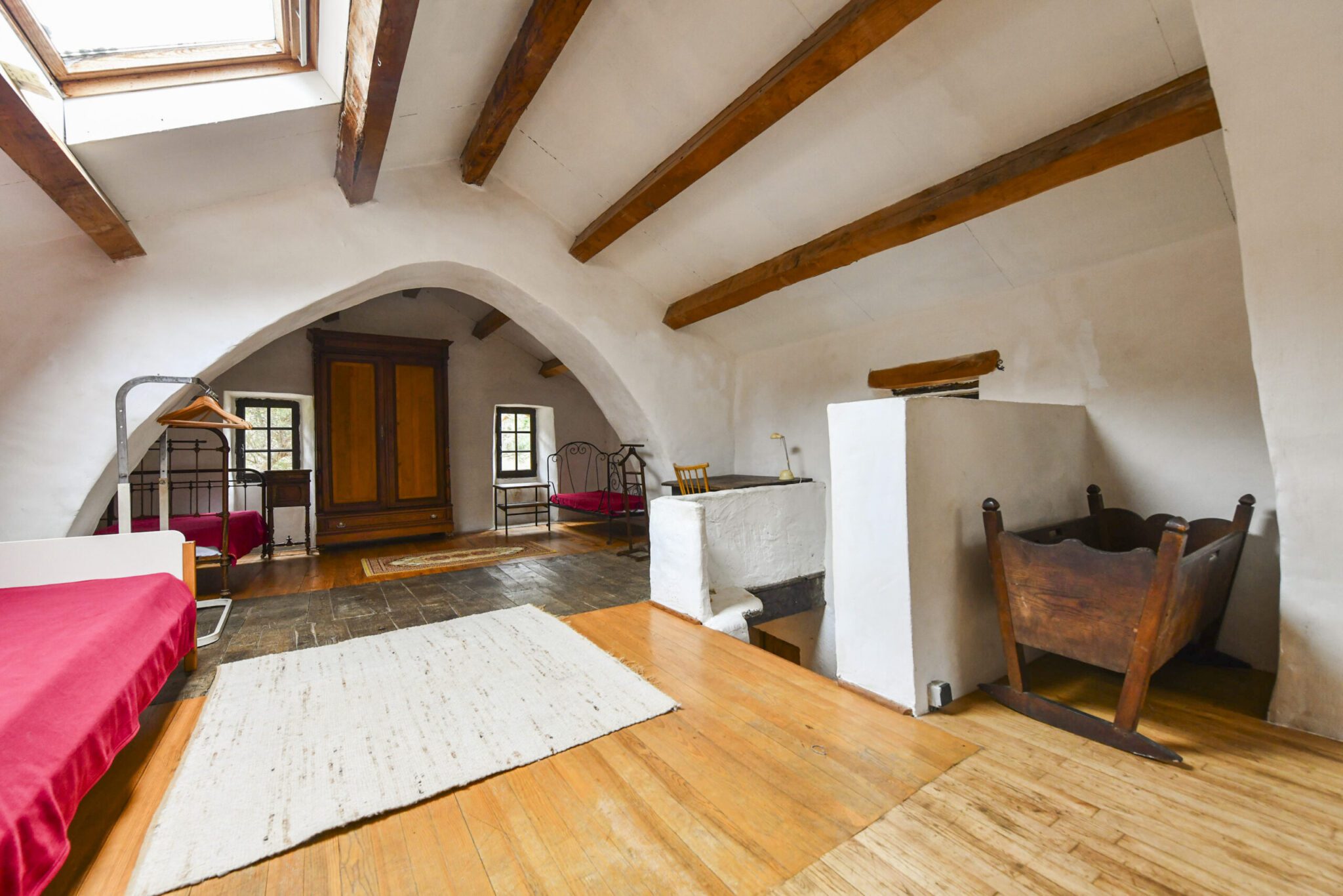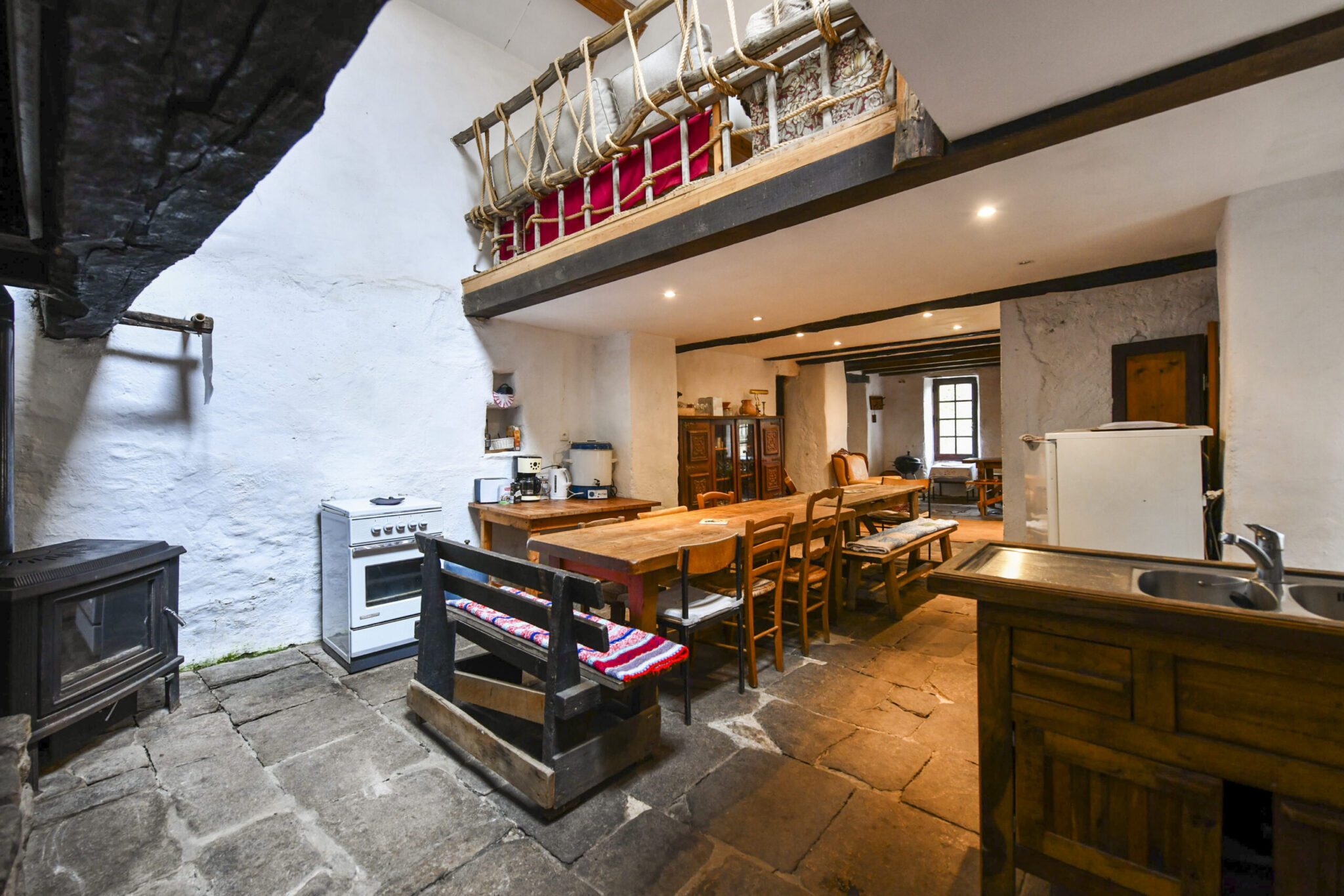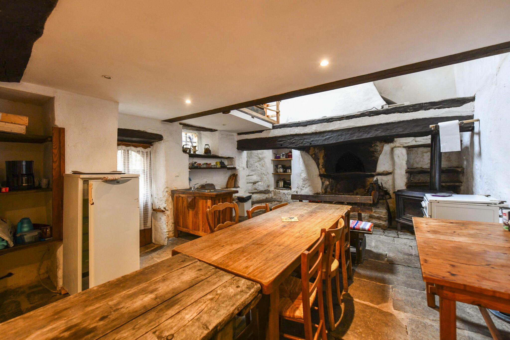 The School features a spacious kitchen and living area, perfect for gathering around a festive table. Some of the beds are located on an overlooking gallery, giving the interior a warm and open feel, well-suited to hosting guests and communal stays. Probably built in the late 16th century, the School is one of the oldest buildings in Bardou. It served as a school from 1901 until 1921, educating children from Bardou, Héric and nearby farms.